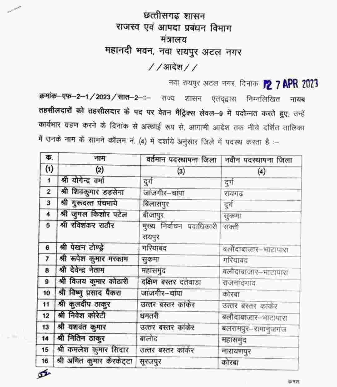 45 नायब तहसीलदार बने तहसीलदार, पदोन्नति के साथ हुआ स्थानांतरण भी ।