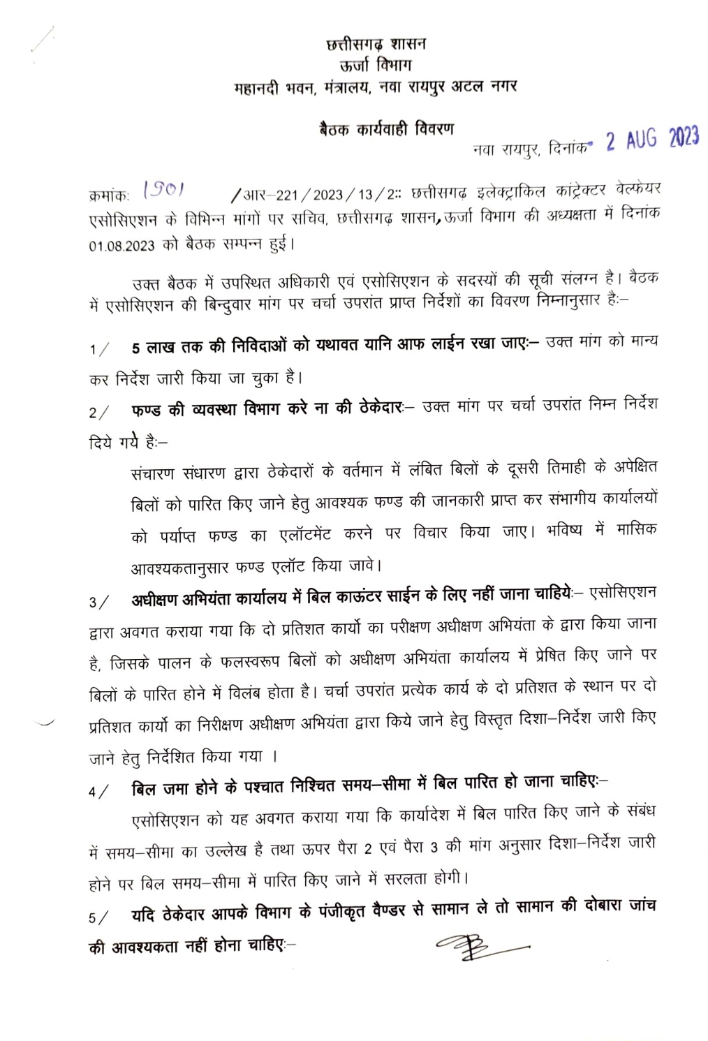 रायपुर। प्रदेश के बिजली ठेकेदारों ने अपनी पांच सूत्रीय मांगों को लेकर हड़ताल शुरू कर दी है। जिसके बाद राज्य के बिजली से जुड़े प्रोजेक्टों पर मुसीबत आ सकती है। इन ठेकेदारों ने सोमवार को पावर कंपनी के डंगनिया स्थित मुख्यालय का घेराव कर दिया। जहां ठेकेदारों की पुलिस के साथ जमकर झूमाझटकी भी हुई है। ठेकेदारों का आरोप है कि ऊर्जा विभाग के मंत्री के कहने के बावजूद अधिकारी अपनी मनमानी कर रहे हैं। हमारी मांगों पर ध्यान नहीं दिया जा रहा । छत्तीसगढ़ इलेक्ट्रिक कॉन्ट्रैक्टर वेलफेयर एसोसिएशन के मीडिया प्रवक्ता आलम ने बताया कि आज हड़ताल की सूचना हमने पावर कंपनी प्रबंधन को दे दी थी। लेकिन उन्होंने हमारी मांगों पर ध्यान नहीं दिया। आगे उन्होंने बताया कि शासन ने 2020 में आदेश निकाला था कि 20 लाख तक के टेंडर को ऑफलाइन किया जायेगा। जिसके बाद सभी विभागों ने इन्हें लागू किया ।